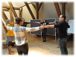 Unter dem Motto „Zusammen-Wachsen“ haben wir uns Zeit genommen, um intensiv und kreativ Ideen für die Weiterentwicklung des Vereins zu spinnen, den Blick über die unmittelbaren Herausforderungen des Alltagsgeschäfts zu heben und einen Raum zu eröffnen, in dem sich die vielfältigen Erfahrungen und Anliegen von Team, Vorstand, Mitgliedern und Freunden der Kreisau-Initiative zu einem Ganzen verbinden und Neues entstehen konnte. Es war dabei für alle Beteiligten wichtig, dass ein solcher Prozess über einen längeren Zeitraum angelegt sein sollte und von Beginn an partizipativ zwischen Vorstand und Team unter Einbeziehung weiterer ehrenamtlich engagierter Menschen beginnen sollte.